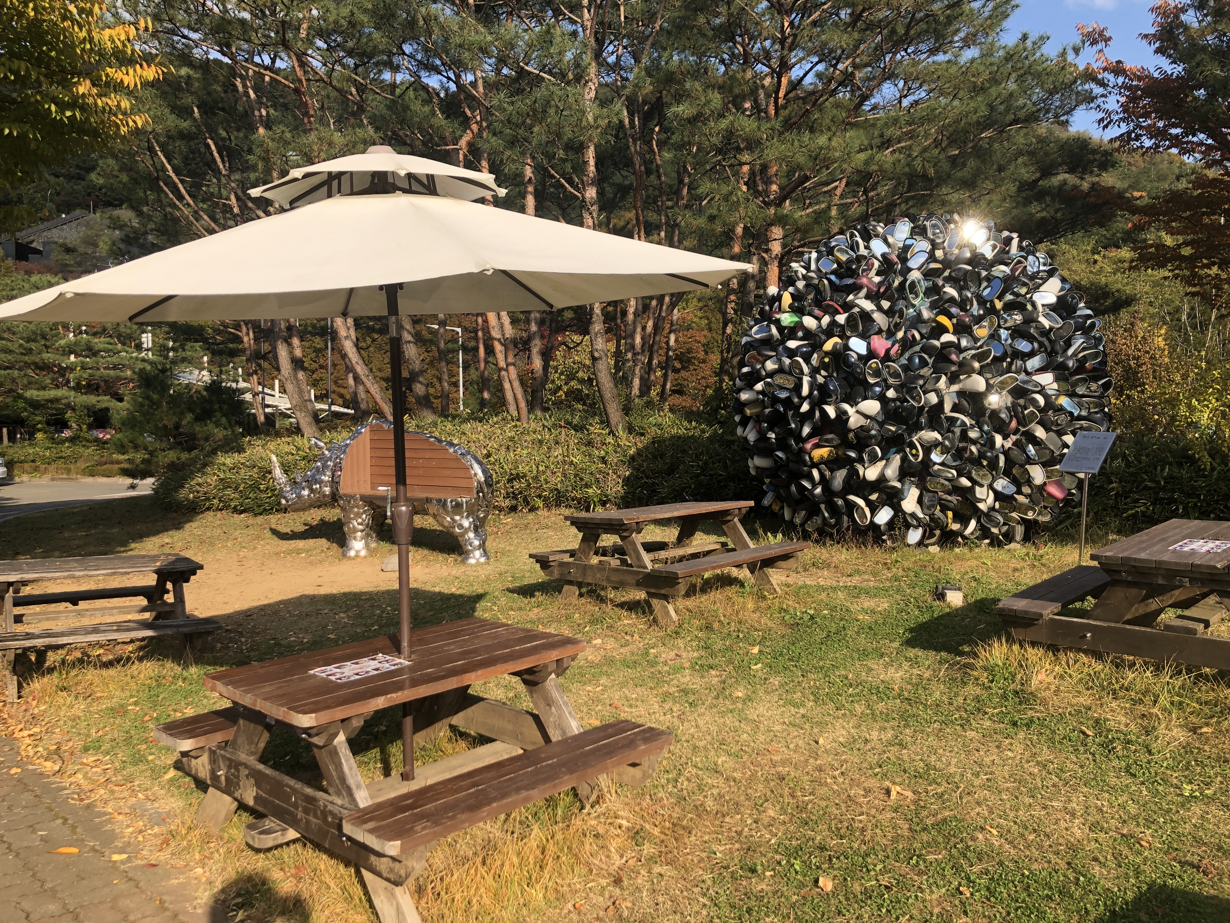 하지만 너무 아쉬워하지 않으셔도 됩니다. 센터 바깥에 휴식 공간이 굉장히 훌륭했습니다. 조형물도 다양했고, 휴식공간도 넓고 많이 있었습니다.